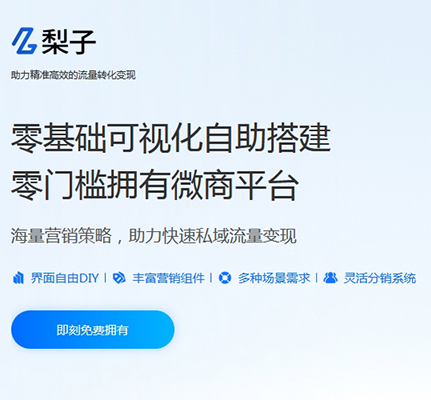 【梨子商城】提供免費(fèi)專業(yè)的微商城系統(tǒng), 支持商家自助免費(fèi)開通專屬私域營銷、分銷平臺(tái)商城。